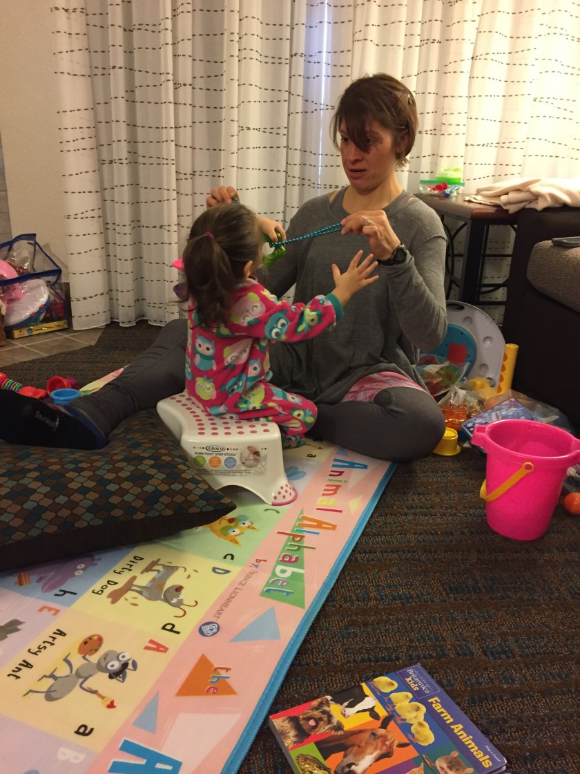 My husband started a new job with a new schedule this week so it’s just myself and Audrey until 7:30 each night. It’s been exhausting but I have tried to keep a good schedule going to get us through each day. Between our therapy schedule and the additional classes I have Audrey in, we have stayed pretty busy!