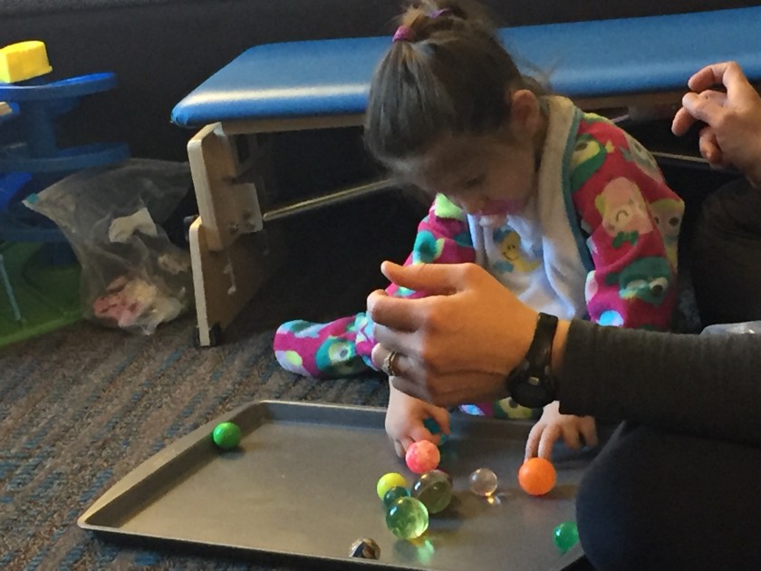 I am getting back into the swing of things and am constantly trying to maximize learn time for Audrey. We are using a big diaper box for “high knees” practice. It is the perfect makeshift bench for her height! I have reached out to a few people in regards to finding more therapy hours for Audrey. Not sure when or how this will happen but I will keep fighting!