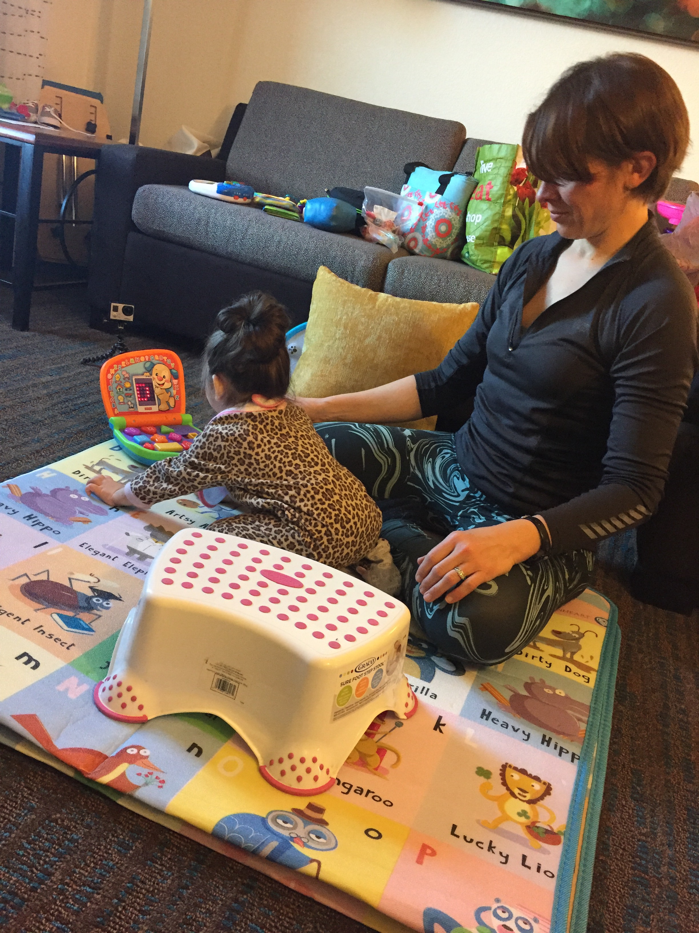 I am getting back into the swing of things and am constantly trying to maximize learn time for Audrey. We are using a big diaper box for “high knees” practice. It is the perfect makeshift bench for her height! I have reached out to a few people in regards to finding more therapy hours for Audrey. Not sure when or how this will happen but I will keep fighting!